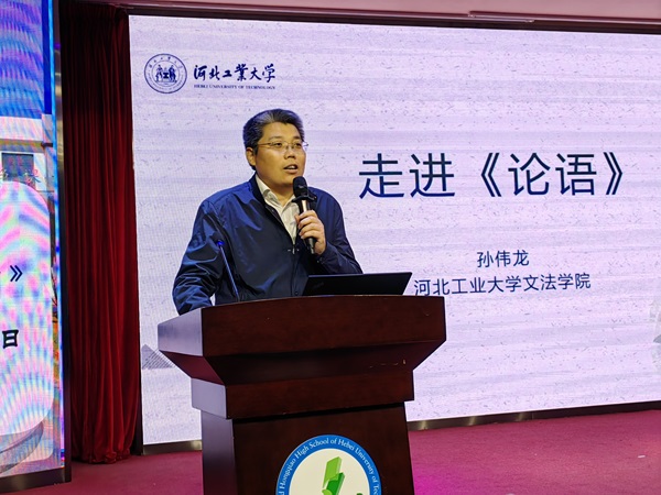 3月26日,我系教师孙伟龙再次走进河北工业大学附属红桥中学“仁和大讲堂”(第三十七期)为广大师生带来了主题为《走进<论语>》的精彩讲座,从《论语》简介、为什么要读《论语》、怎么读《论语》三方面讲解了《论语》的精妙内涵。本次讲座是本系走出校园、服务社会的系列活动之一,合作办学扩宽了教育领域,弘扬了传统文化。