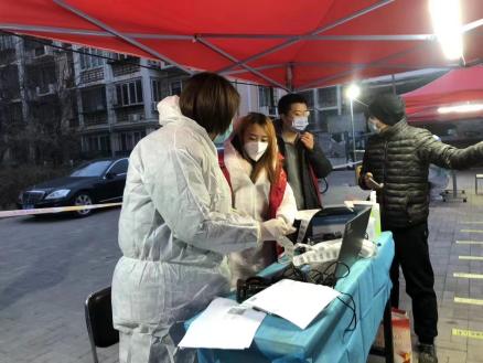 2021级全日制闫雪同学在红桥区芥园西道世春里进行志愿服务。她的主要工作就是给社区住户登记居民信息、录入核酸系统,同时组织社区住户的排队秩序以及做好居民的安抚工作。从早晨六点半开始到晚上十二点,排队核酸检测队伍没有间断过,但是所有的工作人员都坚守在自己的岗位上。在检测核酸的过程中还出现了断电断网的问题,但大家都没有慌乱,工作人员们急中生智改成手录信息,居民也都比较积极配合,保障了检测工作的顺利进行。