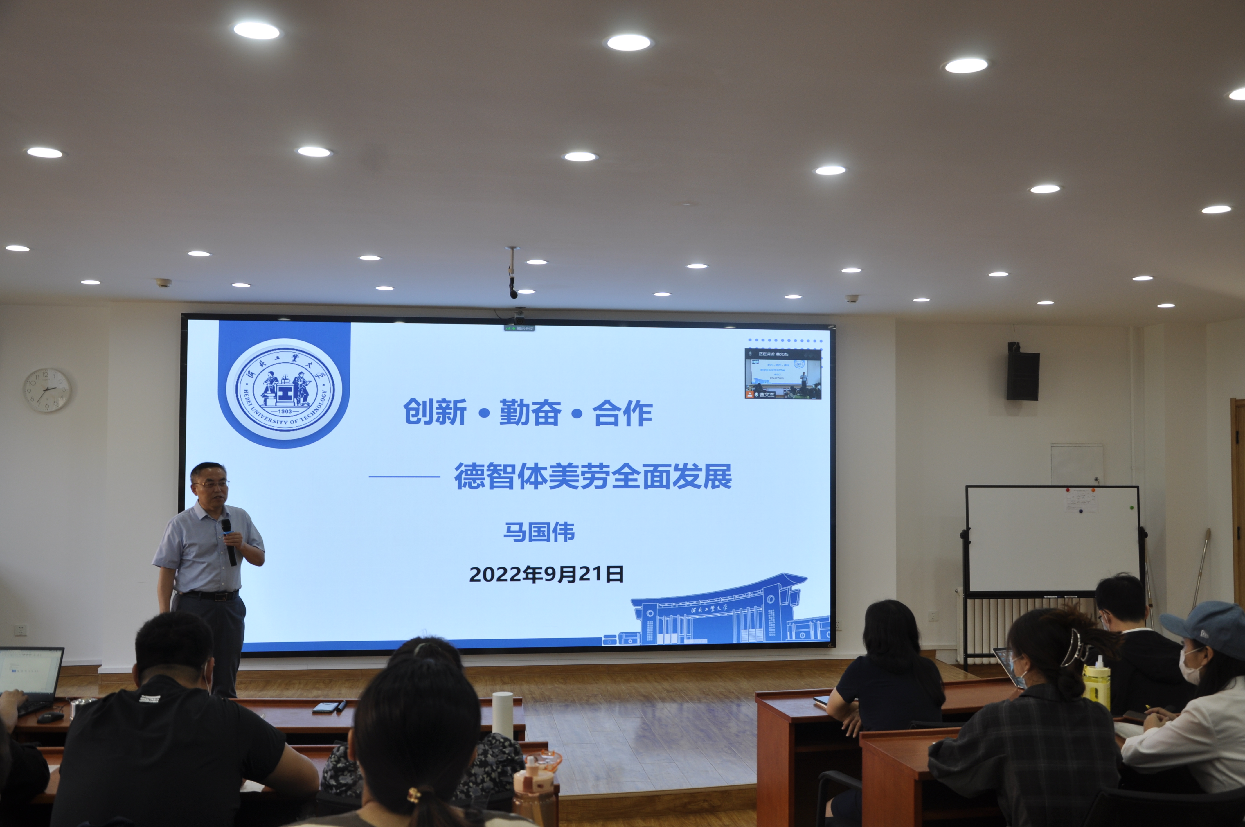 2022年9月21日下午,河北工业大学副校长马国伟教授受邀做客ag百家乐试玩开学第一课,在河北工业大学东院MPA教育中心带来了以《创新•勤奋•合作—德智体美劳全面发展》为主题的讲座,本次讲座由ag百家乐试玩 副院长闫文博主持,ag百家乐试玩 院长李艳双、副院长马立民、部分老师及2022级全体MPA同学参加了本次讲座。