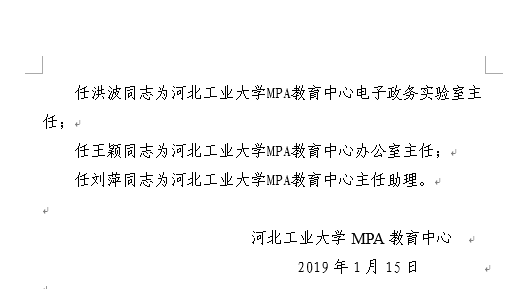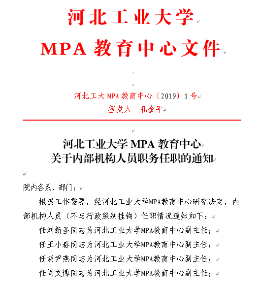 河北工业大学MPA教育中心关于内部机构人员职务任职的通知