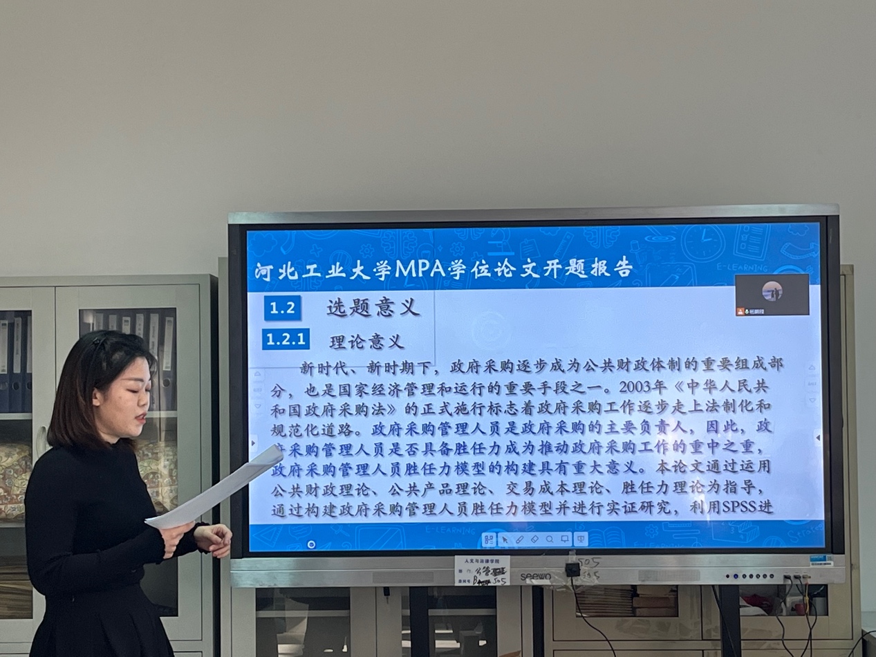 2021年11月27日上午8点30分,ag百家乐试玩 2020级MPA专业同学在ag百家乐试玩 楼参加了开题报告会。本次开题报告会采用线上、线下两种形式,ag百家乐试玩邀请了河北工业大学人力资源处处长李子彪教授、高校学生事务管理方向带头人陈鸿雁教授、河北工业大学劳动法研究所所长李培智教授、中国社会保障学会青年委员会委员张金峰副教授担任各评委组组长。