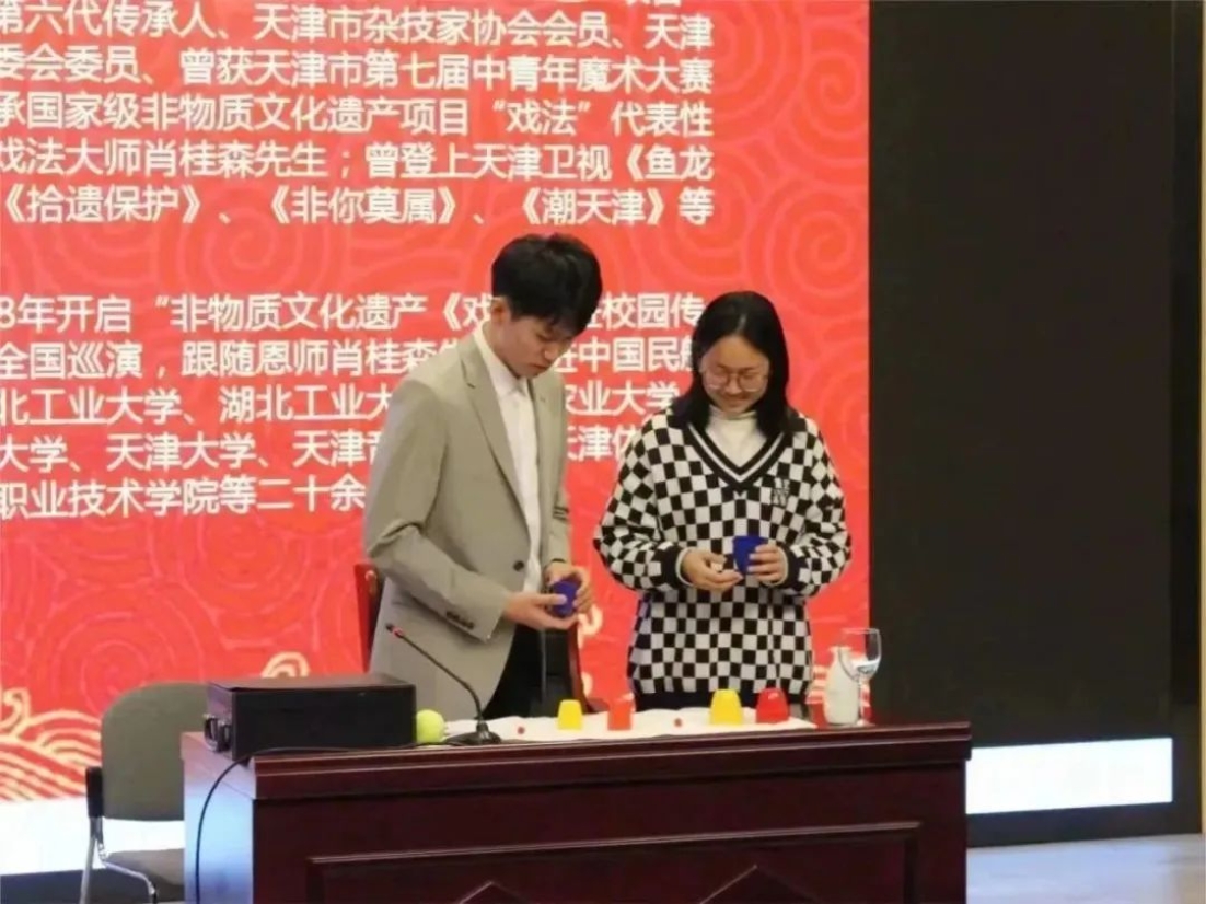 接下来,黄娜老师向我们讲述了中国古戏法与河北工业大学的一次次美好相遇和古戏法给同学们带来的非凡的快乐与文化熏陶。