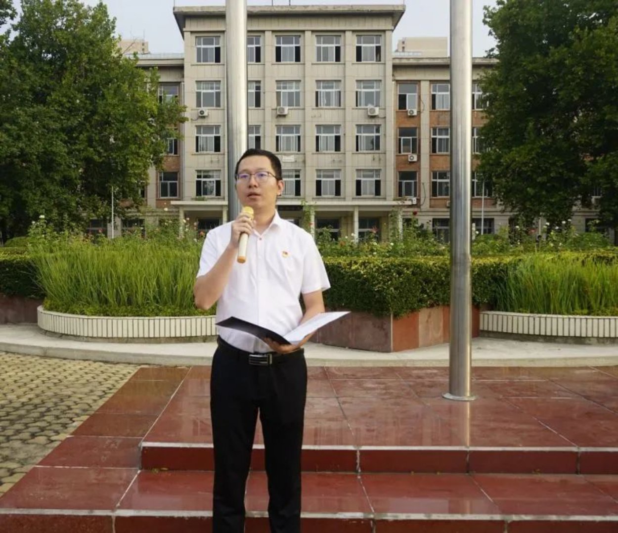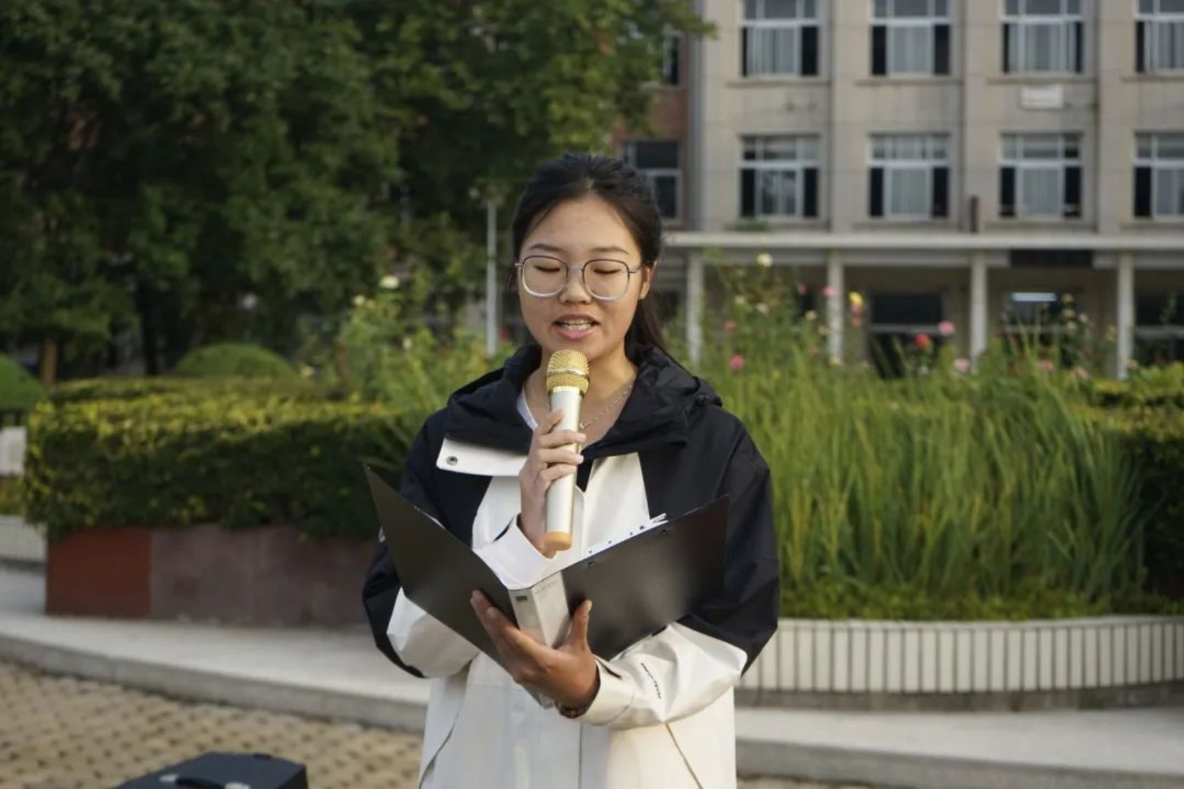 迎着清晨的阳光学生代表公共管理专业231班史哲宜同学进行了国旗下的演讲。她代表文法学子作出三点承诺:一是承诺会做好时间管理,“只争朝夕”;二是承诺遇到困难会无所畏惧,迎难而上;三是承诺立鸿鹄之志,破浪前行。