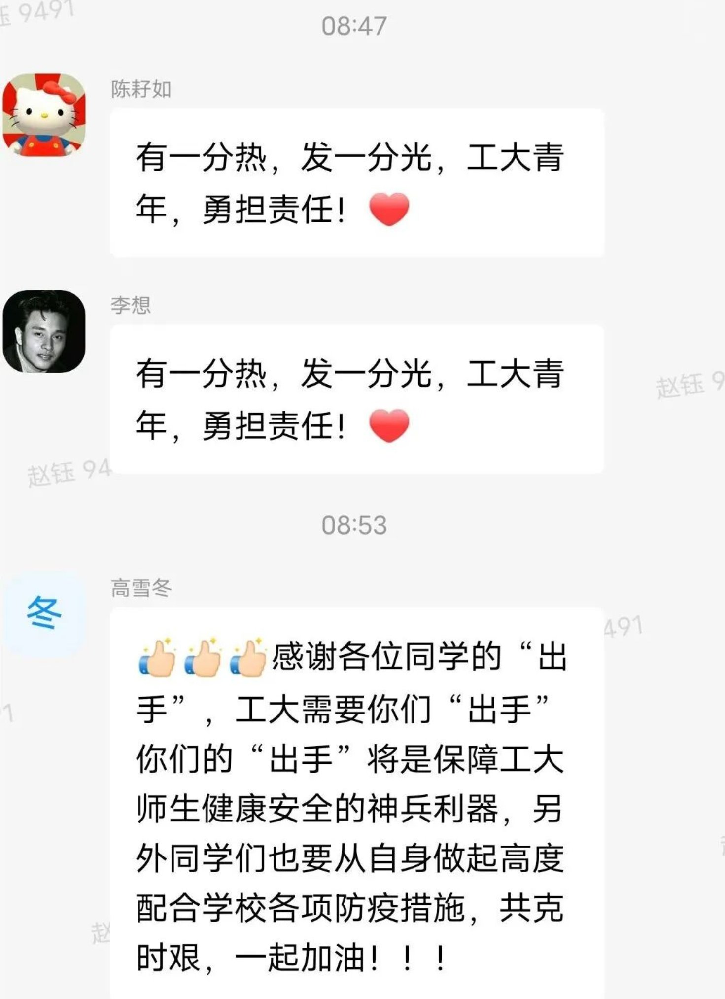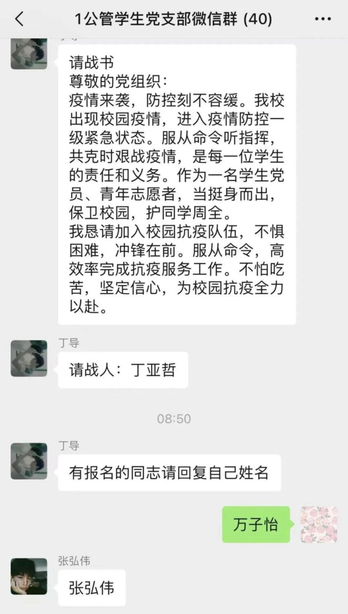 铮铮誓言,铿锵有力。“同心战疫,静候花开;温暖坚毅,共克时艰;携手共进,工大必胜”、“没有一个冬天不能逾越,没有一个春天不会来临”、“有一份热,发一份光,工大青年,勇担责任”……这一句句都是ag百家乐试玩 党员志愿者突击队和青年志愿者突击队的同学们敢于“出手”的青春誓言。