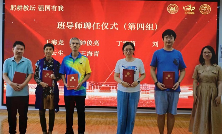 接下来进行了班导师聘任仪式。在新学期ag百家乐试玩共聘任27位优秀教师担任本科生班导师,并向他们颁发了聘书。