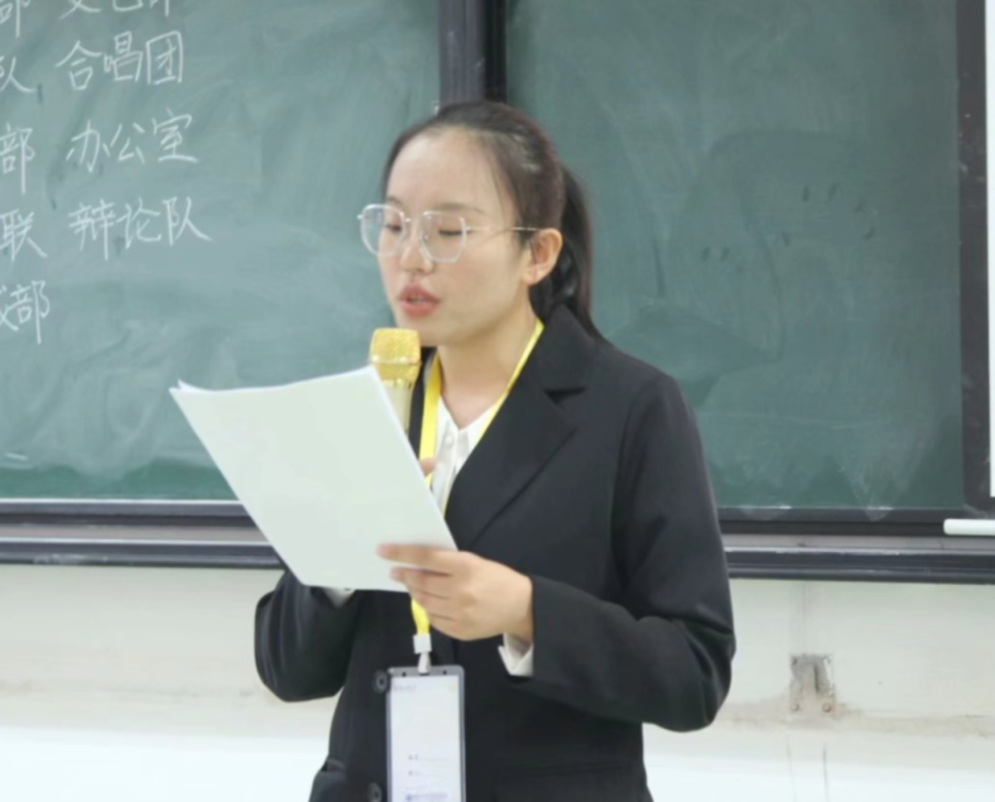 路嘉欣主席回顾了自己之前的学生组织工作经历,在工作中收获和成长。后希望大家能够在未来不断进步,发掘个人的特长和技能,享受一个充实而又快乐的大学生活。