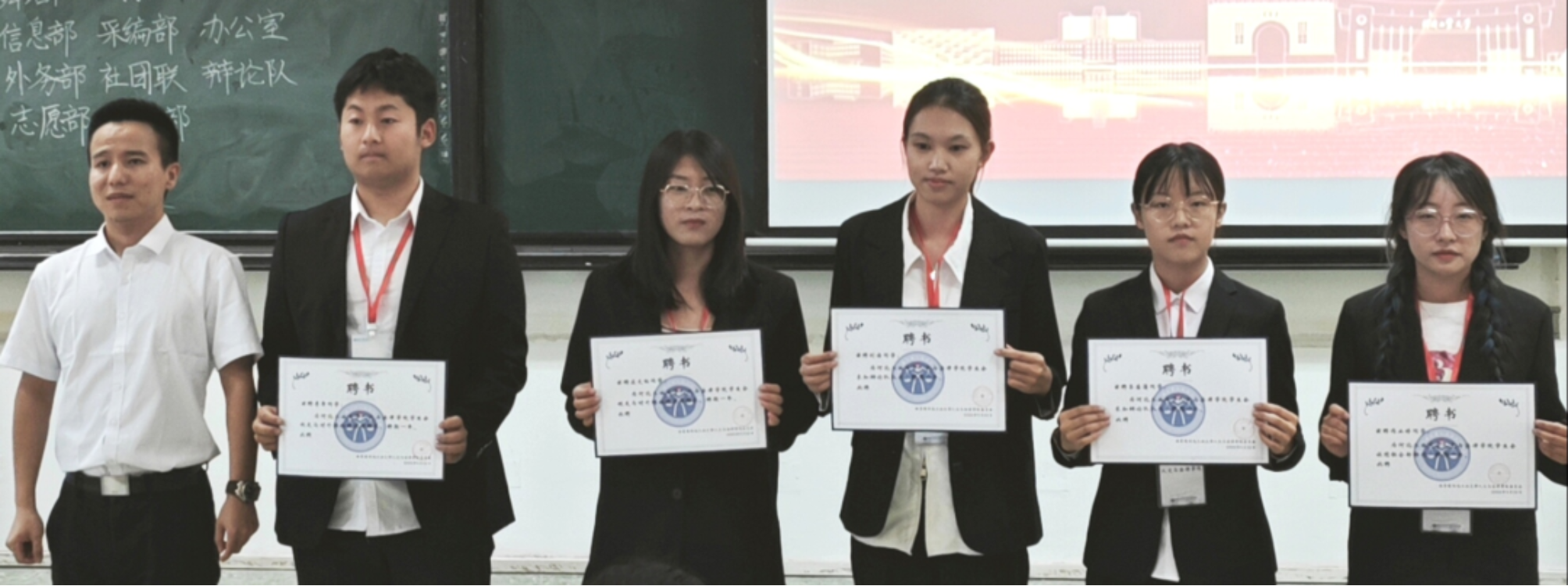 首先,由ag百家乐试玩 党委副书记兼副院长常萌为各位主席颁发聘书。第二十二届学生组织主席团成员有: 王一凡、马鑫洋、于鸿玮、杨丹、江萨出拉、路嘉欣、刘华烨。