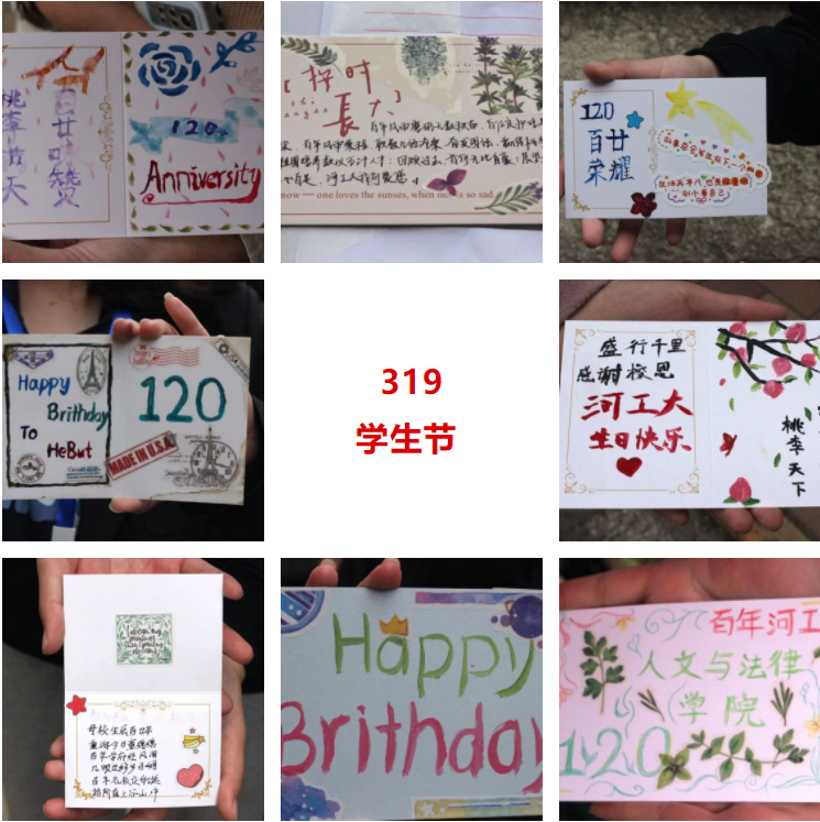 逐梦双甲子,河工正青春。3月19日,我校迎来了“奋进新征程 建功新时代”120周年校庆启动仪式与一年一度的3·19学生节。在已经走过的120年里,在血与火的淬炼中,我们始终并肩而行。站在这样一个新时代的节点上,工大学子比任何时候都为自己的学校感到无比的骄傲和荣耀。莘莘学子共同欢庆,为了这一重大的节日,ag百家乐试玩特举办一系列庆祝活动,让我们来一同见证文法学子对母校的祝福吧!