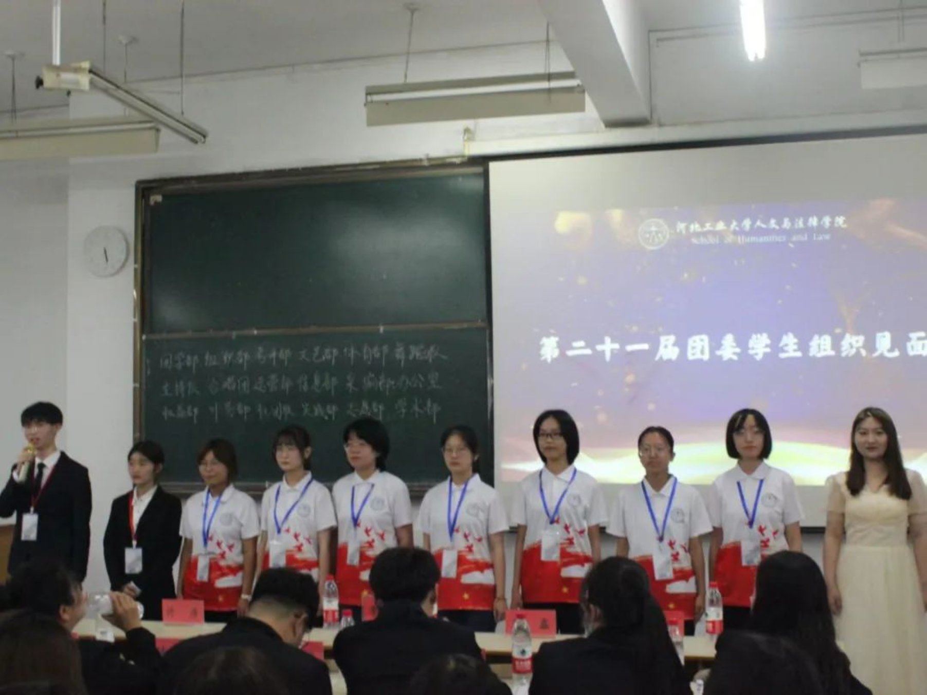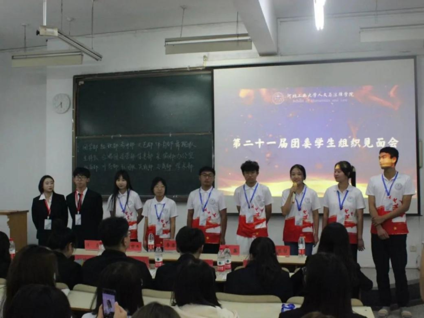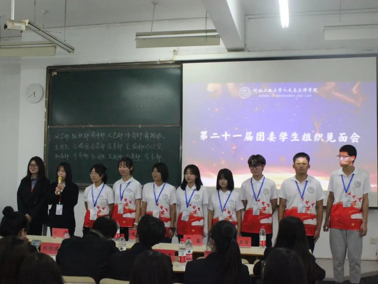 随后是团委各学生组织见面会,新一届的部员们轮流上台自我介绍,大家活泼开朗,妙语连珠,展现出积极向上的青年群团的风貌。相信新一任学生组织成员一定会团结一致,共同努力,秉承上届的优良作风,并在此基础上继续开拓创新,奋发图强!
