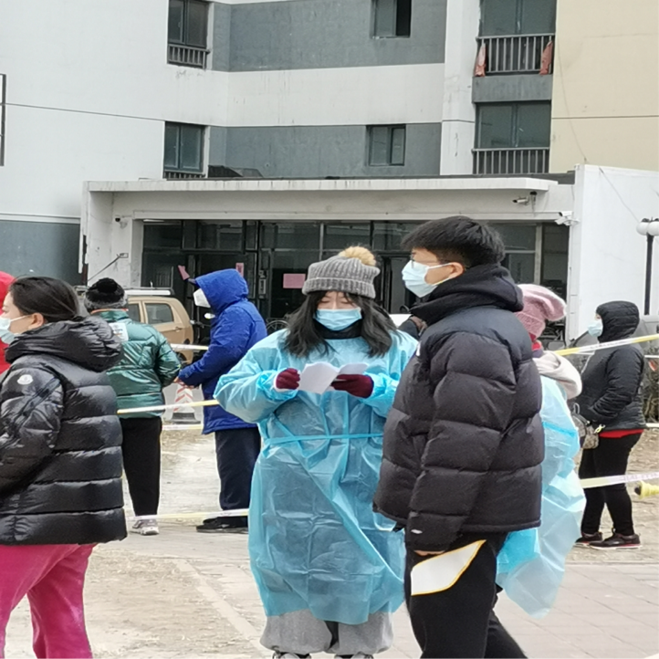汉语182班杜原原同学,于2022年1月24日在家乡新疆石河子市148团和谐社区参加了该社区组织的核酸检测志愿服务协助活动。