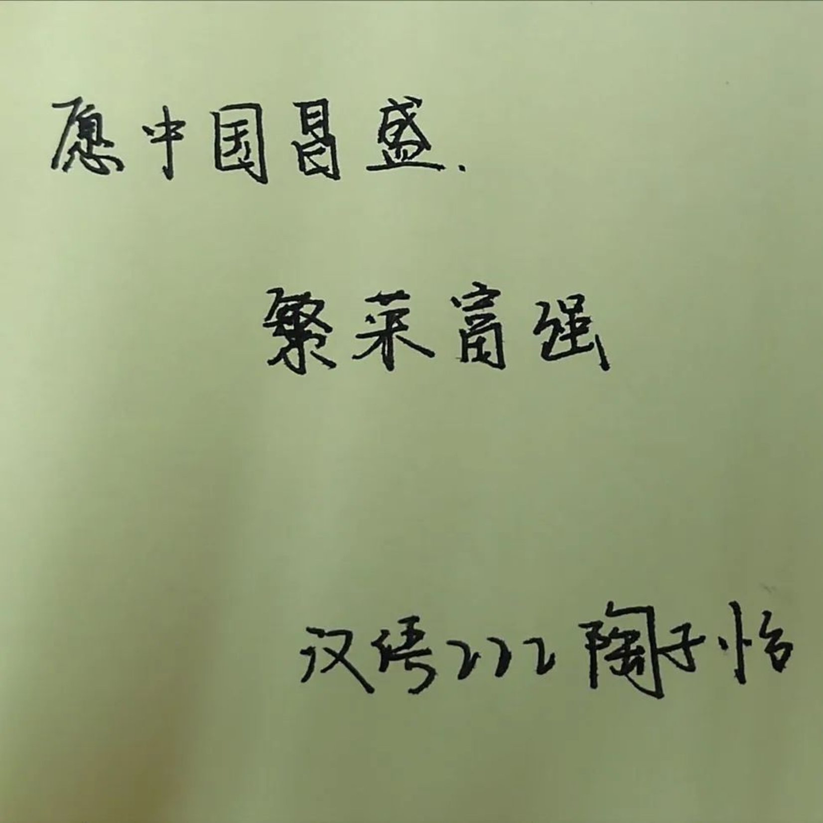 汉语222班陶子怡:愿中国昌盛,繁荣富强。