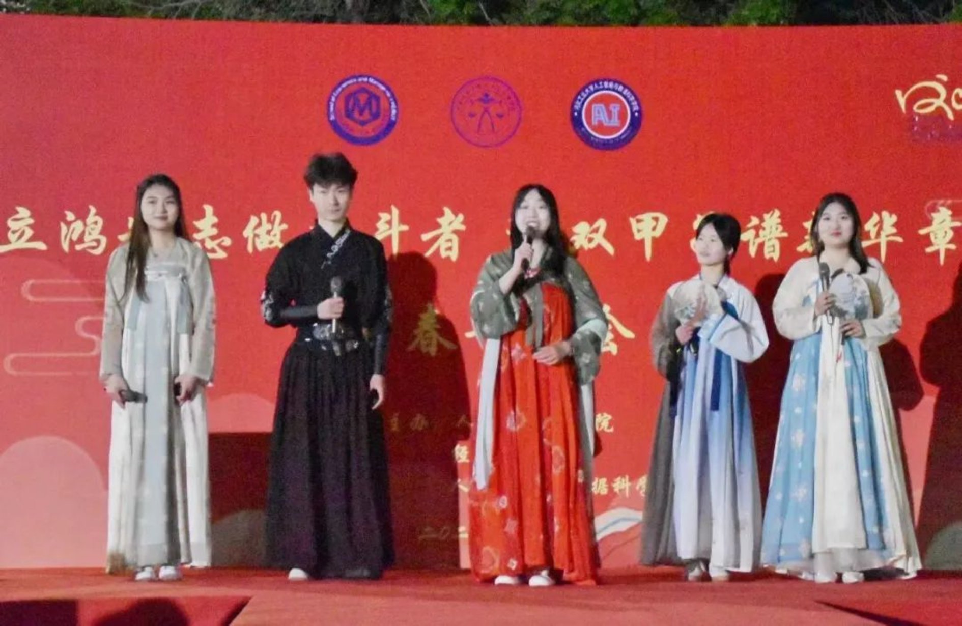 首先由ag百家乐试玩 、人工智能与数据科学ag百家乐试玩 和经济管理ag百家乐试玩 三ag百家乐试玩 的主持人共同为我们揭开晚会的序幕。晚会的节目主要分为三个篇章分别是:《歌以溹声,风禾尽舞》、《环沐毓秀,境涌华光》、《搴芳之行,百廿共荣》。