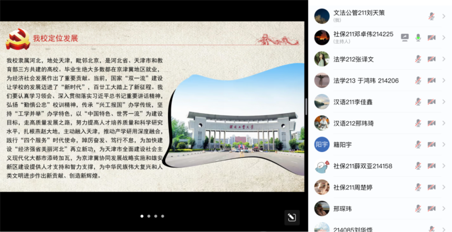 此外,各年级辅导员于3月9日分别开展了一次线上家长会,邀请全体同学和家长共同参加,以走“心”又走“新”的方式深入宣传习近平总书记重要讲话精神,并介绍了习近平总书记视察天津的路线与重要意义。同时,辅导员老师们还立足我校发展定位,鼓舞同学们接续奋斗,共创辉煌。在最后,学生和家长代表分别分享了学习感悟和心得,为会议画上了圆满的句号。