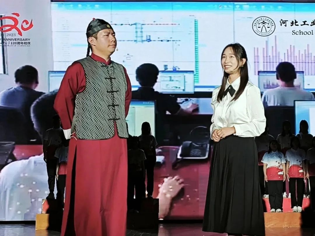 ag百家乐试玩 的学子们以古人与现代人相交流的方式,向观众演示了河北工业大学这120周年来的演变与发展。东海扬尘,渊渟泽汇,百廿沧桑巨变,远眺款语风云,且看百廿时空对话。北洋工艺学堂历经百廿沧桑创造辉煌,如今已改名为河北工业大学,120周年来为国家输送了许多人才,为祖国的繁荣富强贡献了自己的一份力量。