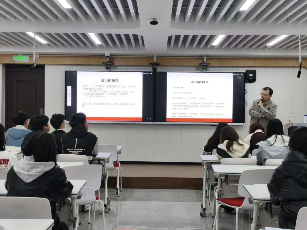 为激发同学们的学习兴趣,提升综合素养与能力,促进师生交流互动,ag百家乐试玩 于10月10日下午两点在红桥校区南院第六教学楼504室组织承办了红桥校区“乐学”科普讲堂第三十六讲。此次“乐学”科普讲堂特邀李飞老师担任主讲,带领同学们一齐走进法治政府建设的宏伟画卷。