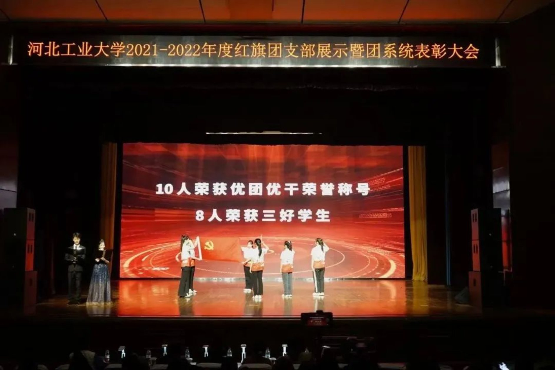征程万里风劲,重任千钧奋蹄,承百廿薪火,立青春之志。青年以青春为底,用奋斗作笔,创激昂青春。河北工业大学2021-2022年度红旗团支部展示暨团系统表彰大会于3月31日在河北工业大学北辰校区大学生活动中心成功举行。ag百家乐试玩 汉语201团支部参加2021-2022年度红旗团支部展示并荣获“2021-2022年度红旗团支部”荣誉称号。