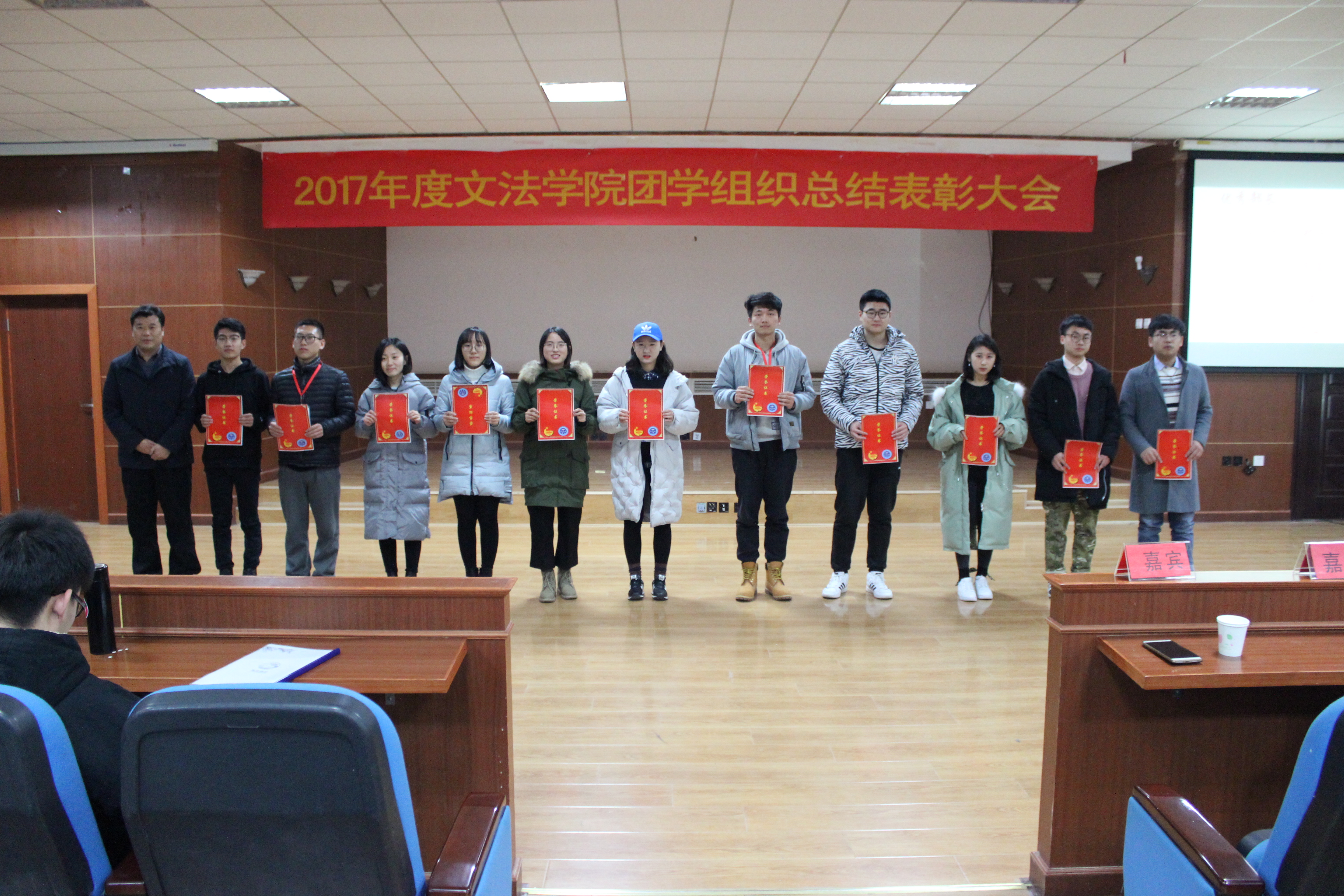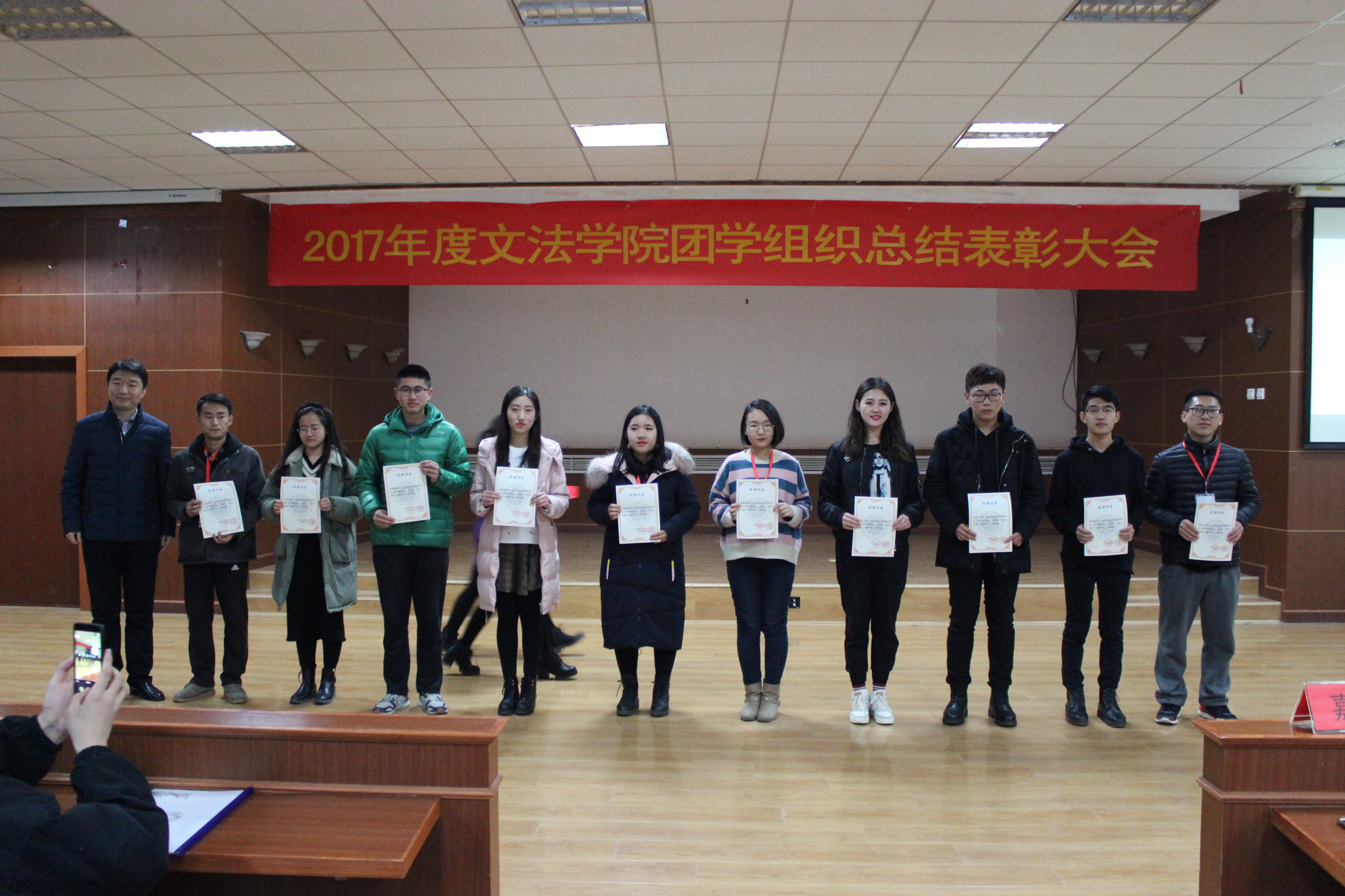 总结表彰大会在温情的歌声中缓缓落幕,我们回顾了团学组织光辉的过往,也获得了未来发展的宝贵经验。过去的半年,是团学组织砥砺奋进的半年,这期间我们见证了团结的力量,见证了个人的成长。团学组织要紧跟时代步伐,它的建设与创新对大学生成长、成才,以及对学生整体发展意义深远,为此我们定会继往开来,不断探索。冬日凌寒使人抖擞奋发,文法学子志在峰巅,不会陶醉在沿途的某个脚印之中。在未来的日子里,我们会齐心协力,锐意进取,用目标提升热忱,用毅力磨平高山,用更高的姿态铸就新的辉煌。漫漫前路,何妨吟啸且徐行!