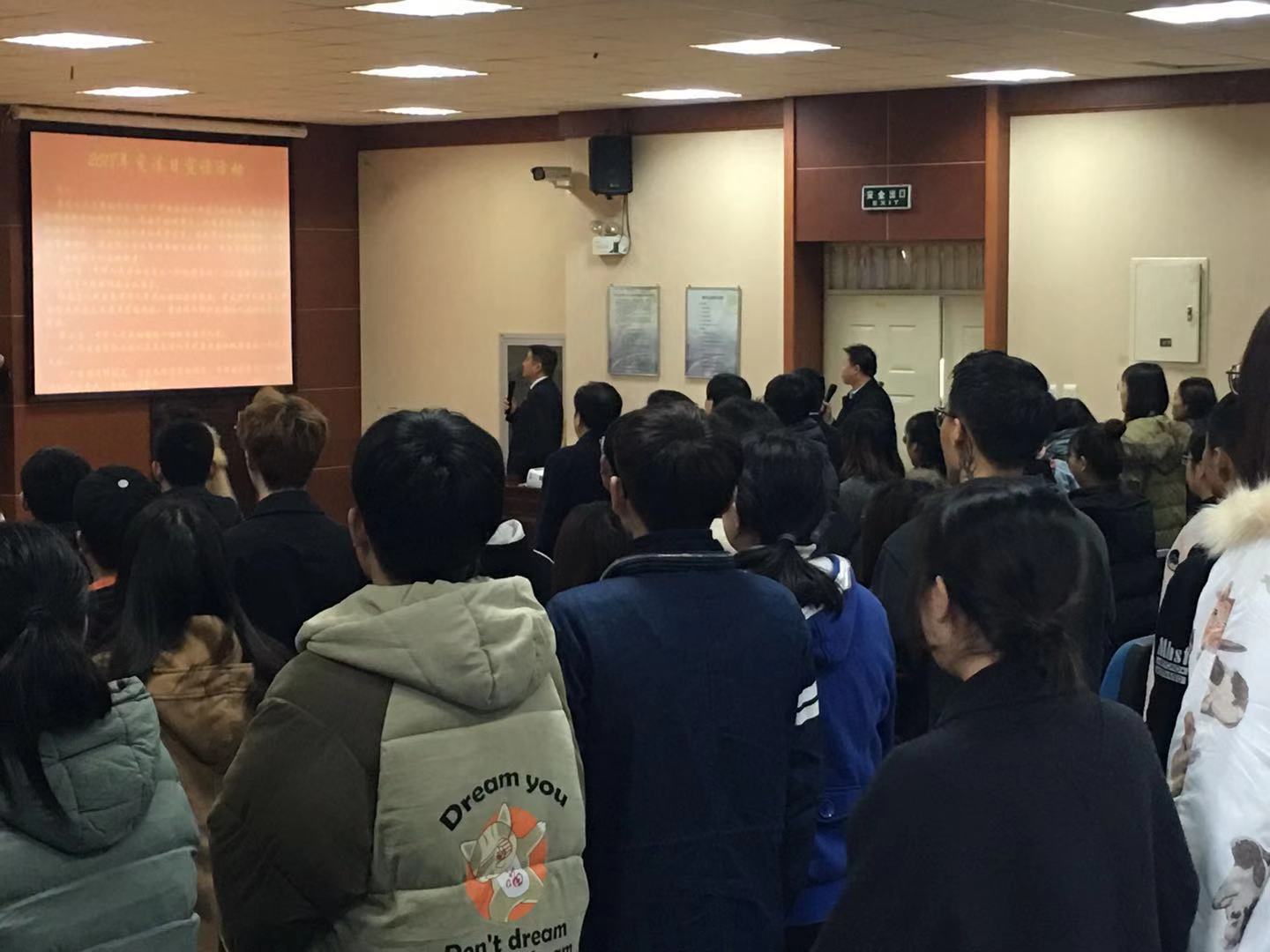 在纪院长的带领下,法官、老师和同学们一起诵读了宪法,让同学们从内心升起对宪法的景仰之情。