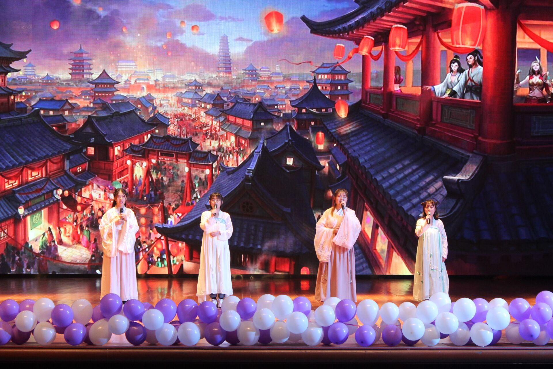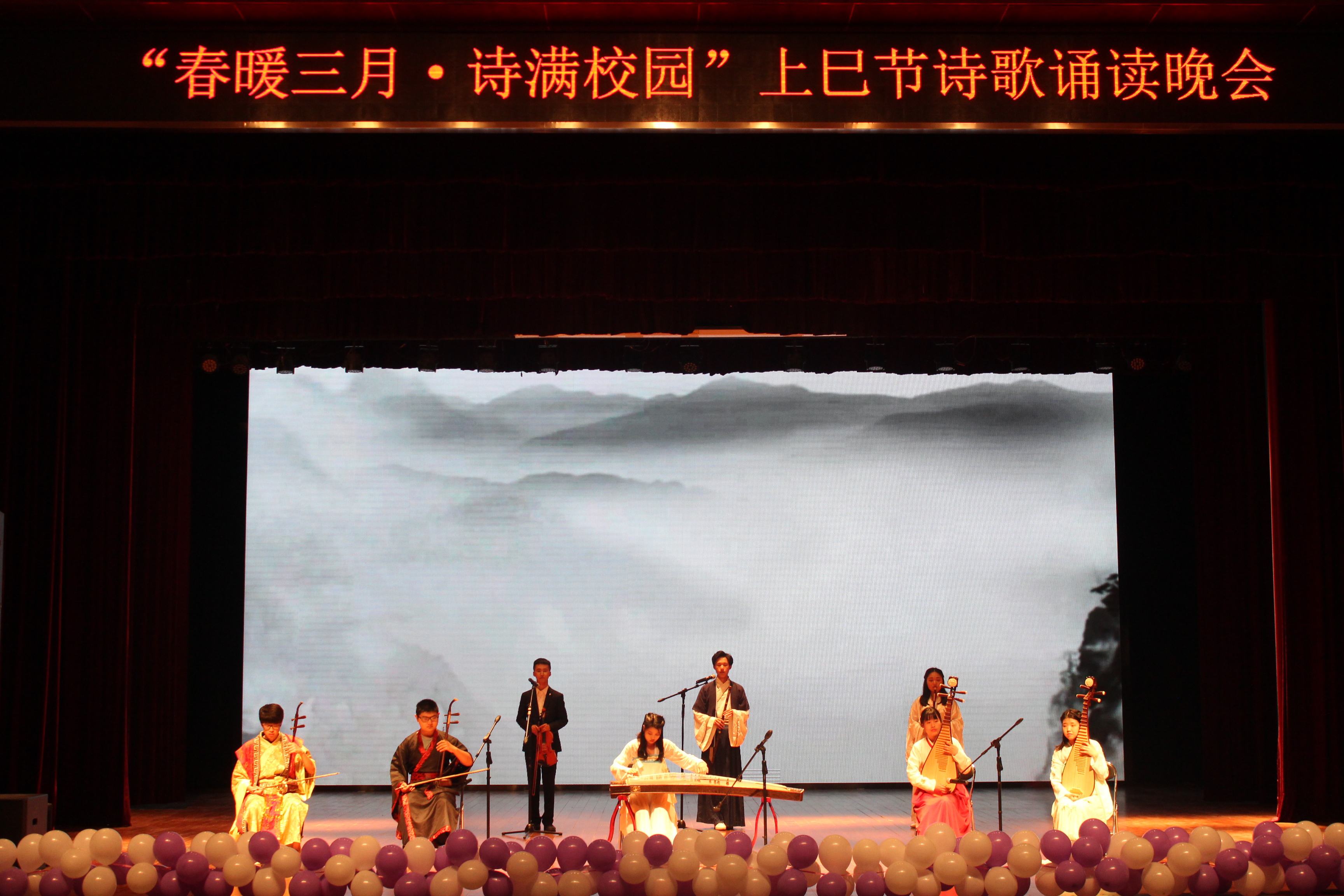 青柳碧遥遥,经典永流传。古人有曲水流觞,今人有诗歌相会。“春暖三月,诗满校园”上巳节经典诵读晚会,古今相交,共享诗情。党委宣传部部长陈鸿雁老师在致辞中提到:“学校党委积极贯彻落实习近平总书记关于文化自信的理念,大力推进传统文化进校园活动,让学生们真正成为传统文化的继承者和传播者。并殷切希望上巳节诗歌大会能继续发挥ag百家乐试玩 优势,营造浓厚的校园文化氛围。”晚会既现汉唐风采,又富时代特色。有舞步翩翩,汉服纸伞,珠钗步摇;有歌声婉转,空灵悠扬,莺愧群散;有四海知己,才子佳人聚,诵诗情画意;有附中学生的童声朗朗,一首《春江花月夜》,带全场看到千年前的海上明月、江流宛转。古时杯流如洛水,今日飞花似春风。晚会的飞花令游戏环节以“月”、“秋”等字为题,调动起了全场的气氛,让人领略到了诗歌经典的魅力和中华文化的博大精深。