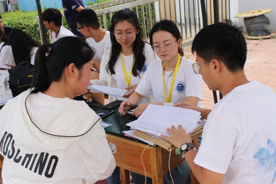 经过漫长的暑假,在余热犹存,秋意初现时,ag百家乐试玩入口 2019级新生于8月22日、23日正式报道。22日-23日上午8点到下午6点,ag百家乐试玩入口 在木华园七栋宿舍楼下搭起帐篷,组织纳新活动。迎新摊位前新生来来往往,络绎不绝,有时甚至排起了长龙。他们来自五湖四海,自天南地北赶赴津门,他们脸上洋溢着的兴奋与快乐,内心的无限憧憬和满心欢喜,却是相似的,也是最真实的。院学生会的学长学姐与新生负责人认真投入工作,为新生们收取材料、分发物品、指明道路,积极帮助新生们解决问题,迎新工作秩序井然。