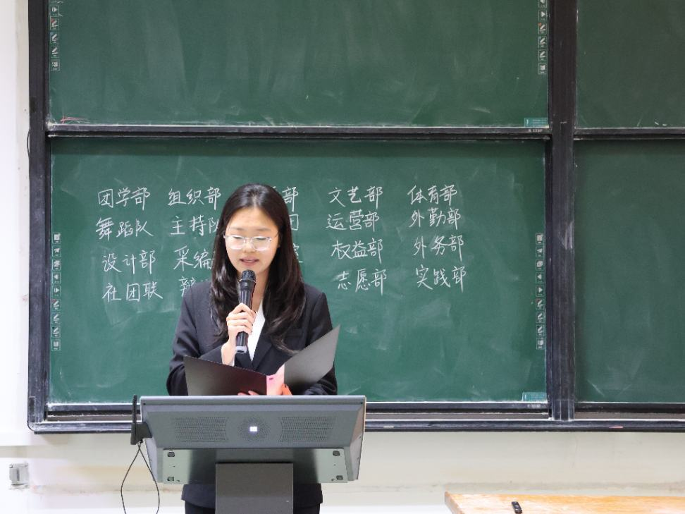 富婧主席向长期以来给予指导与支持的领导、老师,以及并肩作战的团委各部门伙伴致以诚挚感谢,并向25级新同学表示热烈欢迎,期待与大家在晚会聚光灯下合唱、在运动场挥洒汗水,共同书写文体工作的鲜活篇章。