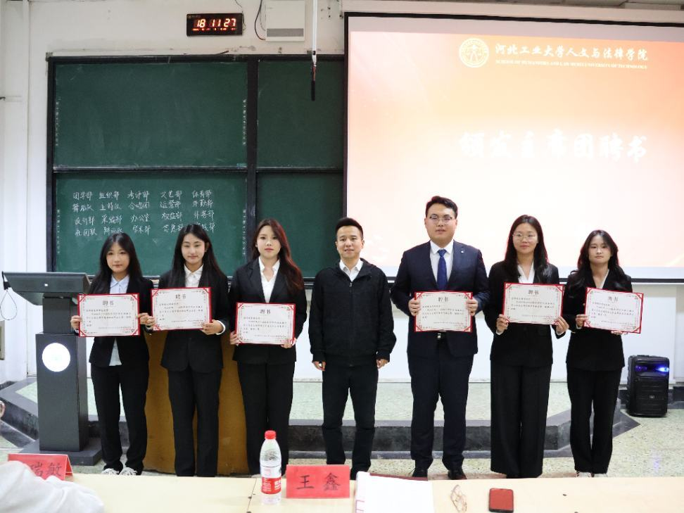 随后,王鑫老师为共青团ag百家乐试玩入口 委员会第二十四届学生组织主席团成员颁发聘书,在场师生共同见证了这一责任的交接与传承时刻。