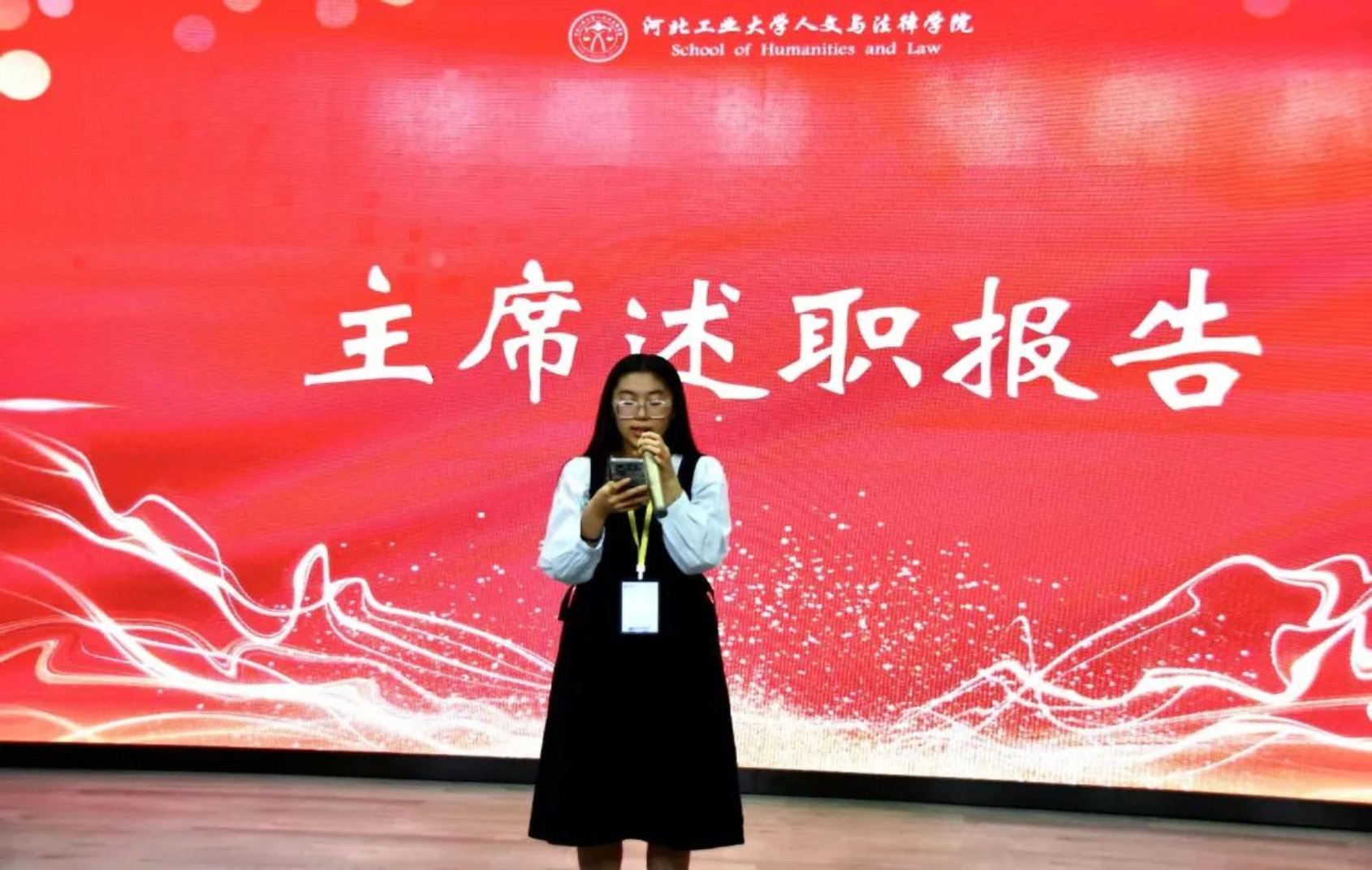 “用汗水浇灌收获,以实干笃定前行。”大会伊始,首先由第二十二届ag百家乐试玩 团委学生组织的主席路嘉欣、刘华烨、江萨出拉、马鑫洋、杨丹分别进行述职报告。他们总结了过去一年以来团委学生组织工作取得的成果和存在的不足,以及一路走来在团委学生组织工作的经历和感想,字字恳切,句句真情。