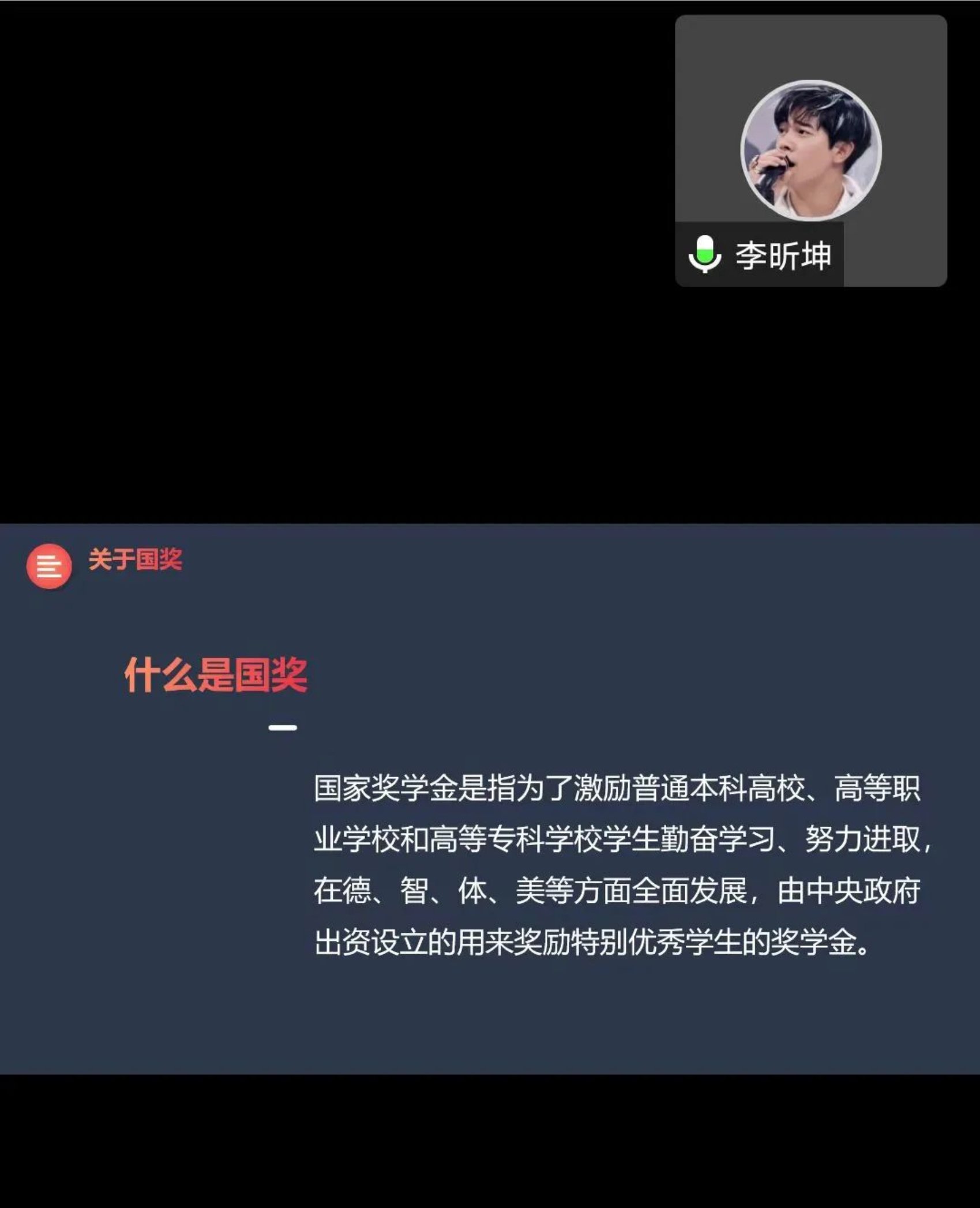 首先他向同学们介绍了国家奖学金的定义,让同学们对于国家奖学金有了一个初步的认识。