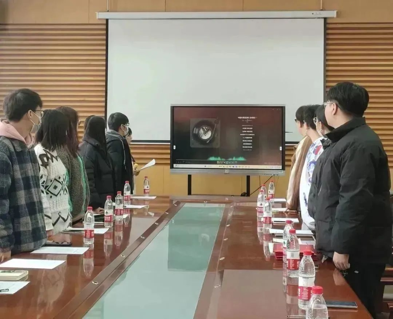 由主持人宣布活动开始后,全体成员起立齐唱中国共产主义青年团团歌《光荣啊,中国共青团》。