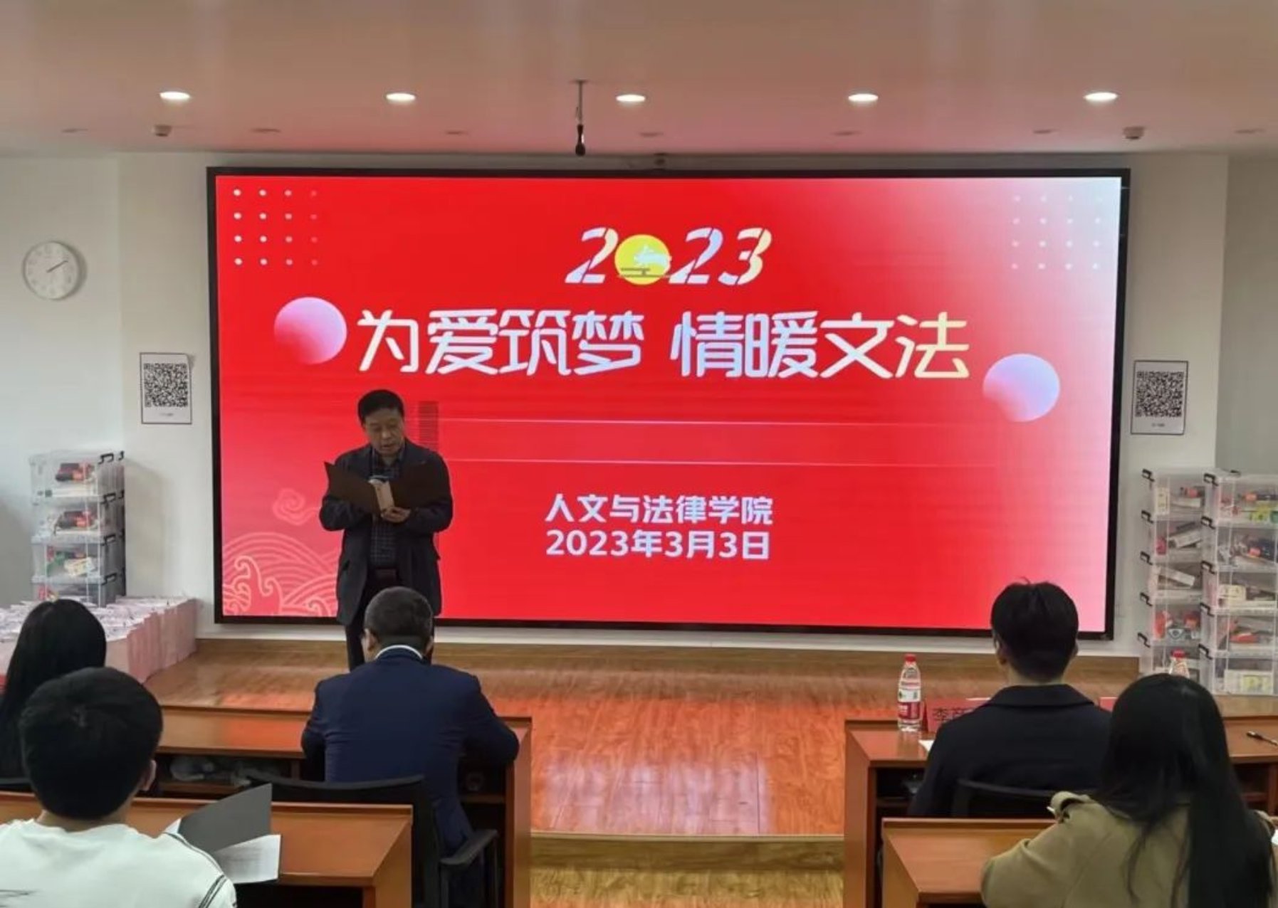 2023年3月3日下午,ag百家乐试玩 举办“为爱筑梦,情暖文法”助学捐赠活动。河北省法学会向ag百家乐试玩 家庭经济困难生捐赠衣物,共为家庭经济困难学生赠送60件冬装。此外,在我校资助管理中心的支持下,ag百家乐试玩 为这60名家庭经济困难学生同步准备了惊喜学习礼包。ag百家乐试玩 党委副书记兼副院长李彦磊,副院长闫文博,河北省法学会旅游法学研究会秘书长、ag百家乐试玩 法学系主任、学术委员会主任蒋冰晶,河北省法学会劳动法学研究会会长、ag百家乐试玩 法学系教授、硕士生导师李培智,河北工业大学学生资助管理中心老师李梓萌,ag百家乐试玩 2020级辅导员丁亚哲、2022级辅导员王鑫出席此次助学捐赠活动。
