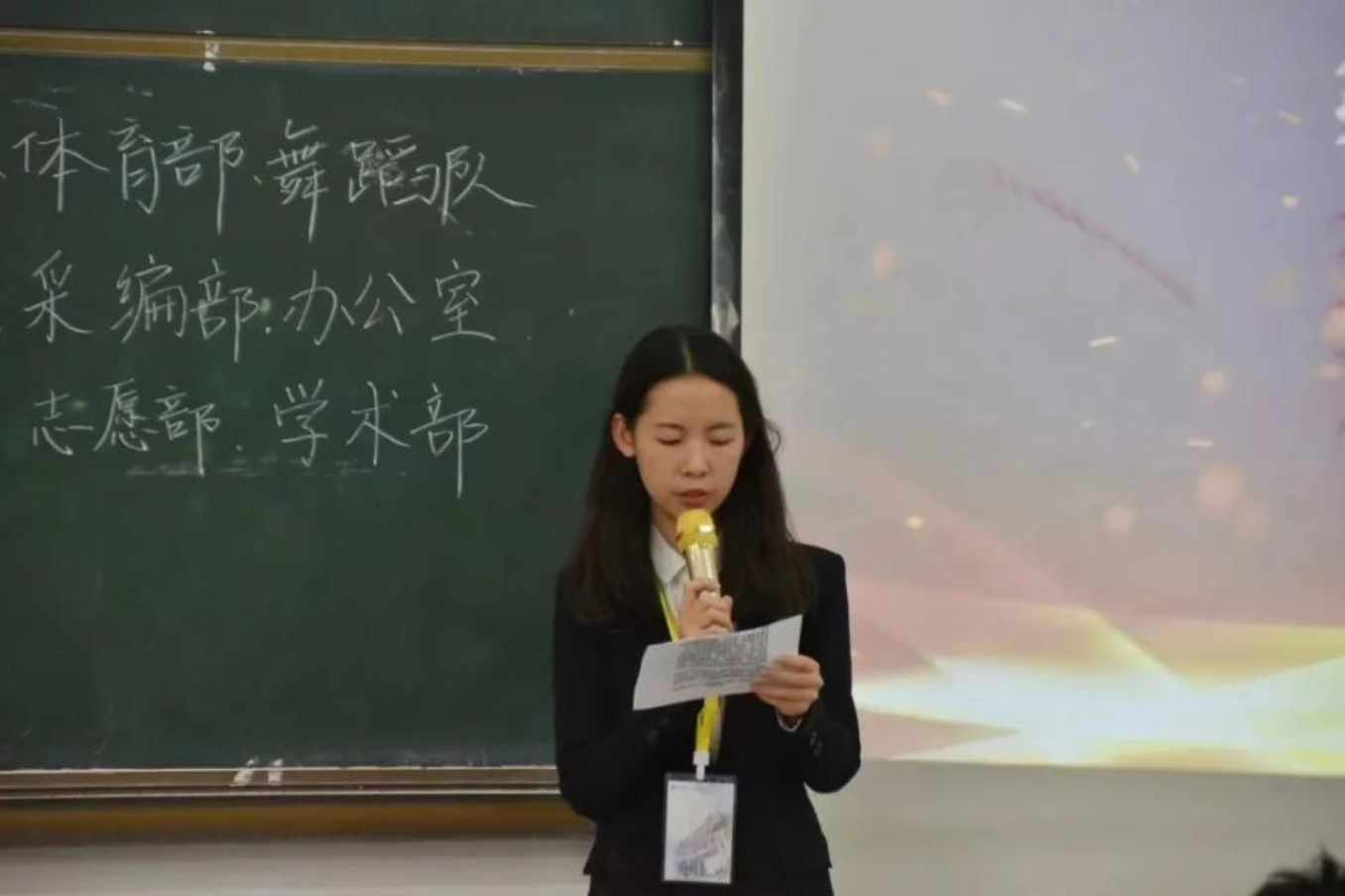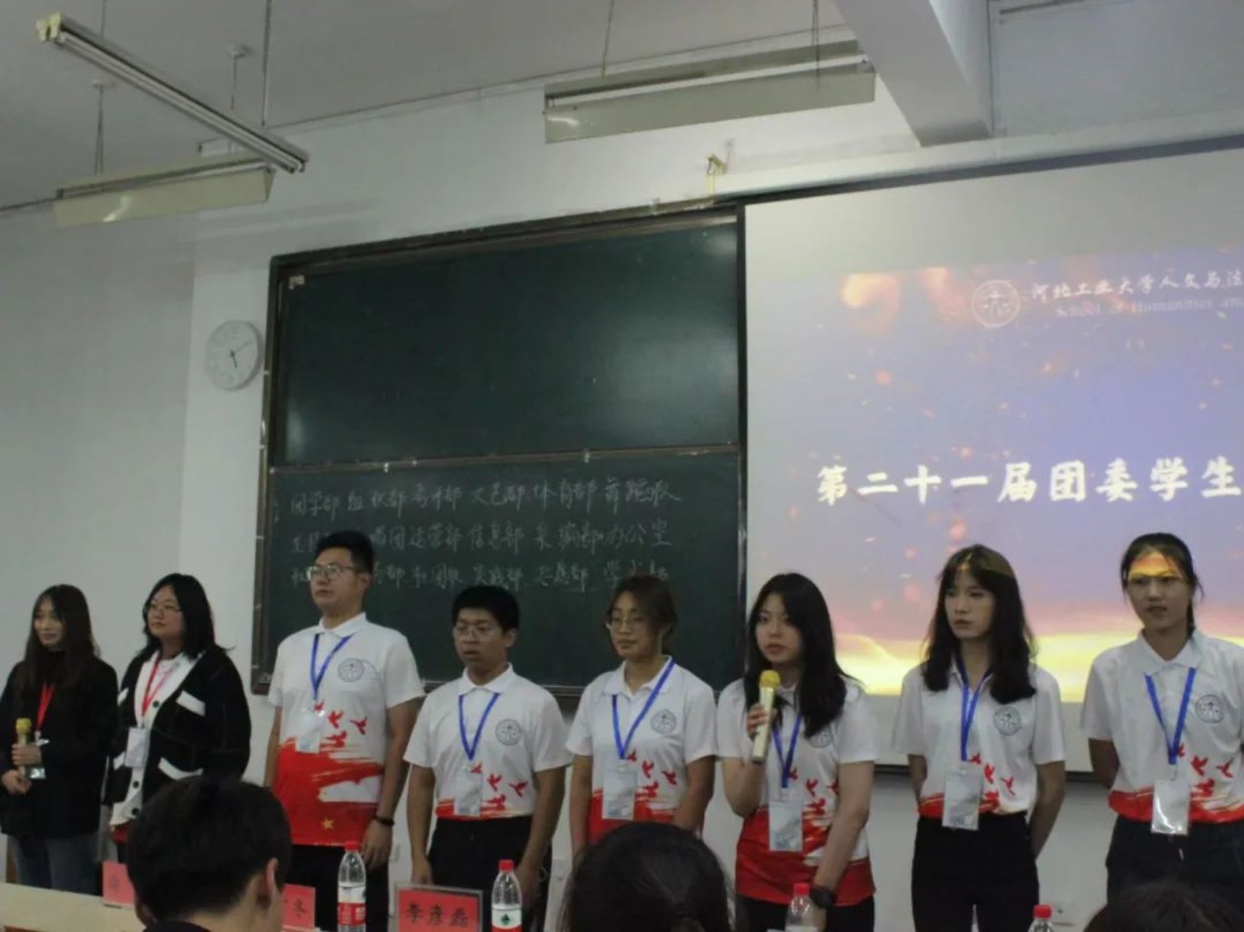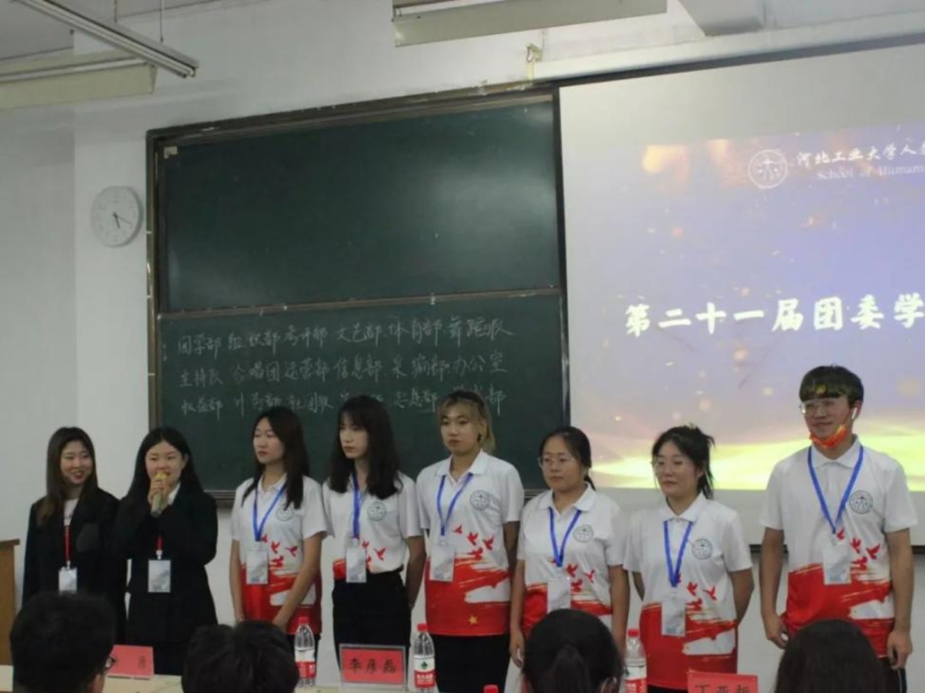 随后是团委各学生组织见面会,新一届的部员们轮流上台自我介绍,大家活泼开朗,妙语连珠,展现出积极向上的青年群团的风貌。相信新一任学生组织成员一定会团结一致,共同努力,秉承上届的优良作风,并在此基础上继续开拓创新,奋发图强!