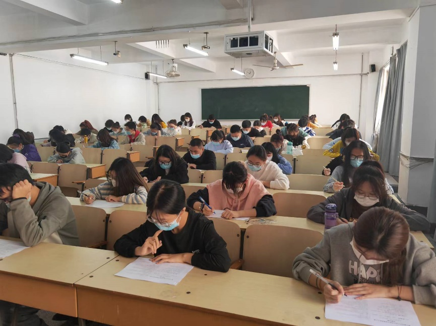 考试开始前,参赛的各位团干部佩戴好口罩有序进场,隔位就坐,安静备考。考试开始后,考场秩序良好,作答氛围紧张,充分展现出ag百家乐试玩 团干部严谨踏实的态度与积极向上的精神风貌