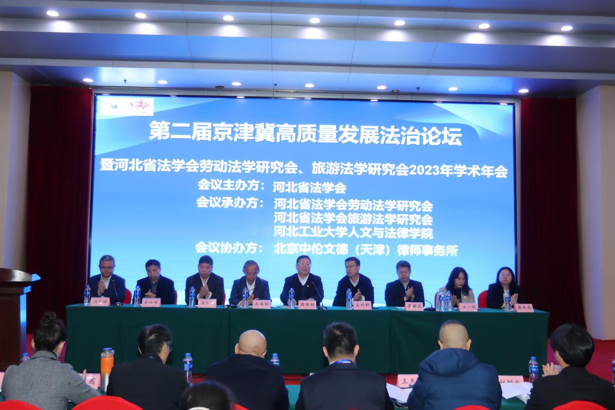 共同承办,北京中伦文德(天津)律师事务所协办的第二届京津冀高质量发展法治论坛暨河北省法学会劳动法学研究会研究会、旅游法学研究会2023年学术年会成功举办。来自京津冀高校和实务部门的学者、法官、律师和学生参加了会议。