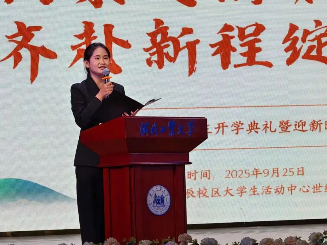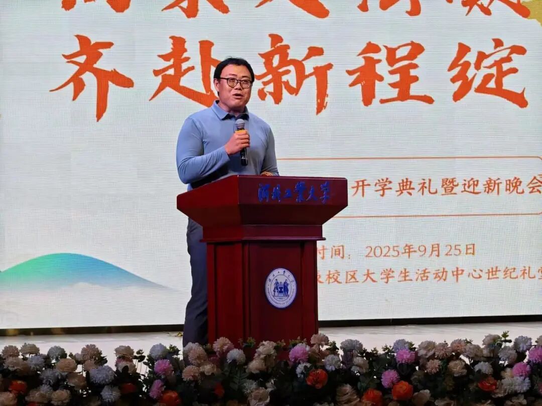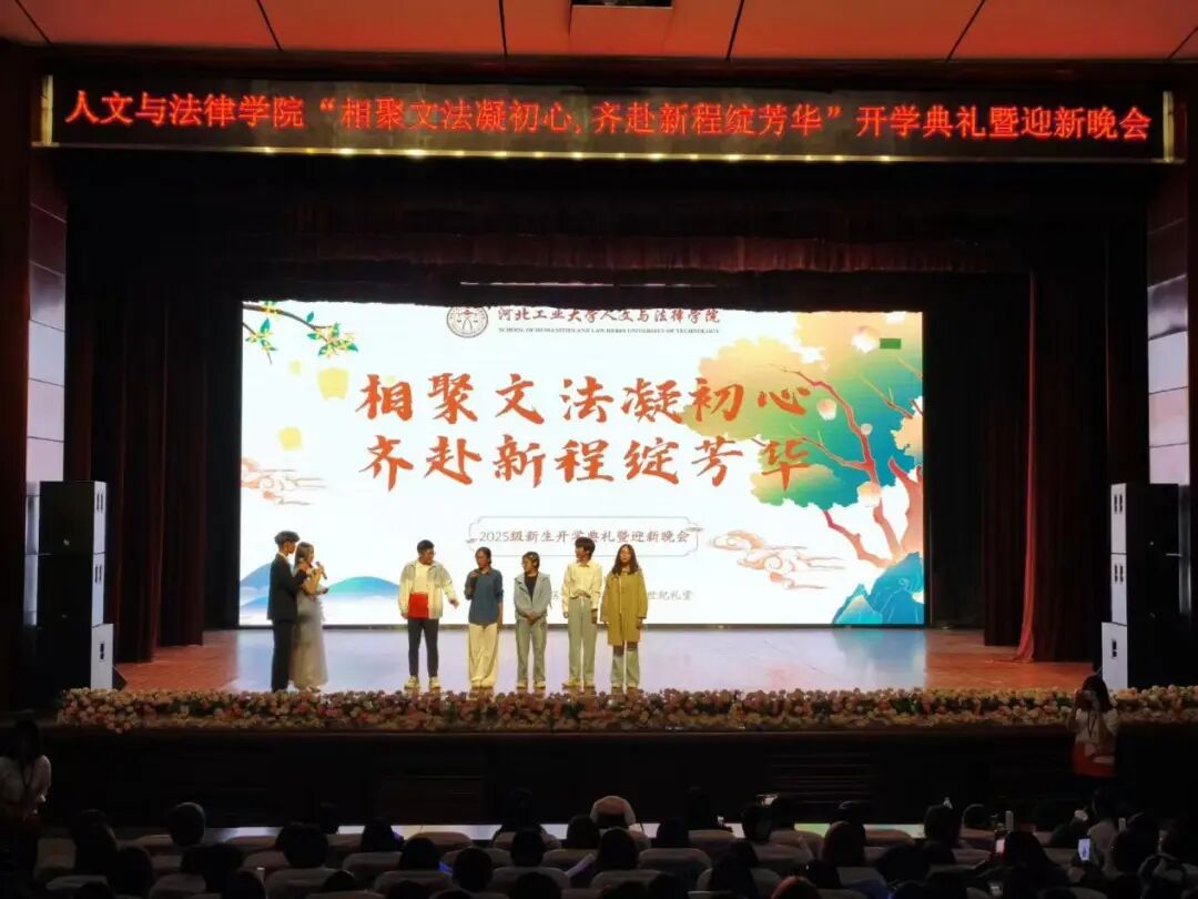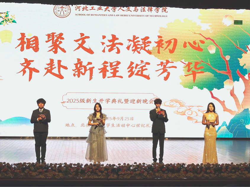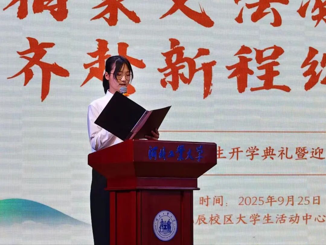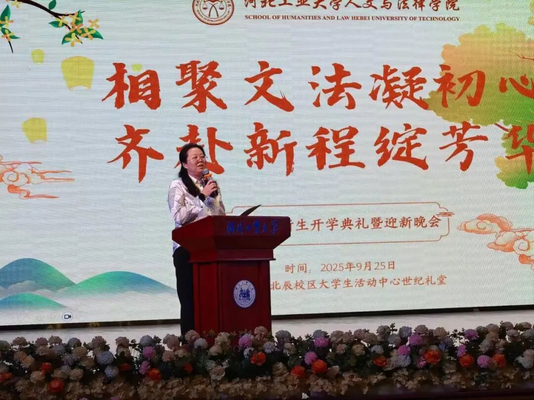 典礼伊始,ag百家乐试玩 院长蒋冰晶作迎新致辞,向加入ag百家乐试玩 的新同学们表示热烈欢迎,并围绕四点期望展开寄语:一是胸怀家国天下,将个人理想融入时代脉搏,以青春力量服务社会发展;二是永葆好奇心与求知欲,既要在课堂上与老师碰撞出思想的火花,又要在社团活动中绽放自我的光彩,“纸上得来终觉浅,绝知此事要躬行”,蒋院长以此勉励同学们要在实践中探索真知、锤炼品格;三是常怀感恩之心,铭记父母的养育之恩和老师的谆谆教诲,珍惜同窗之谊,不负韶华时光;四是涵养乐观豁达的胸襟,以从容之态应对挑战,于磨砺中凝聚奋进之力。最后,蒋院长衷心祝愿ag百家乐试玩 的同学们能够秉承“勤慎公忠”的校训,在人文底蕴与法治精神的滋养下,成长为有温度、有筋骨、有担当的时代新人,在河北工大的热土上放飞青春梦想!