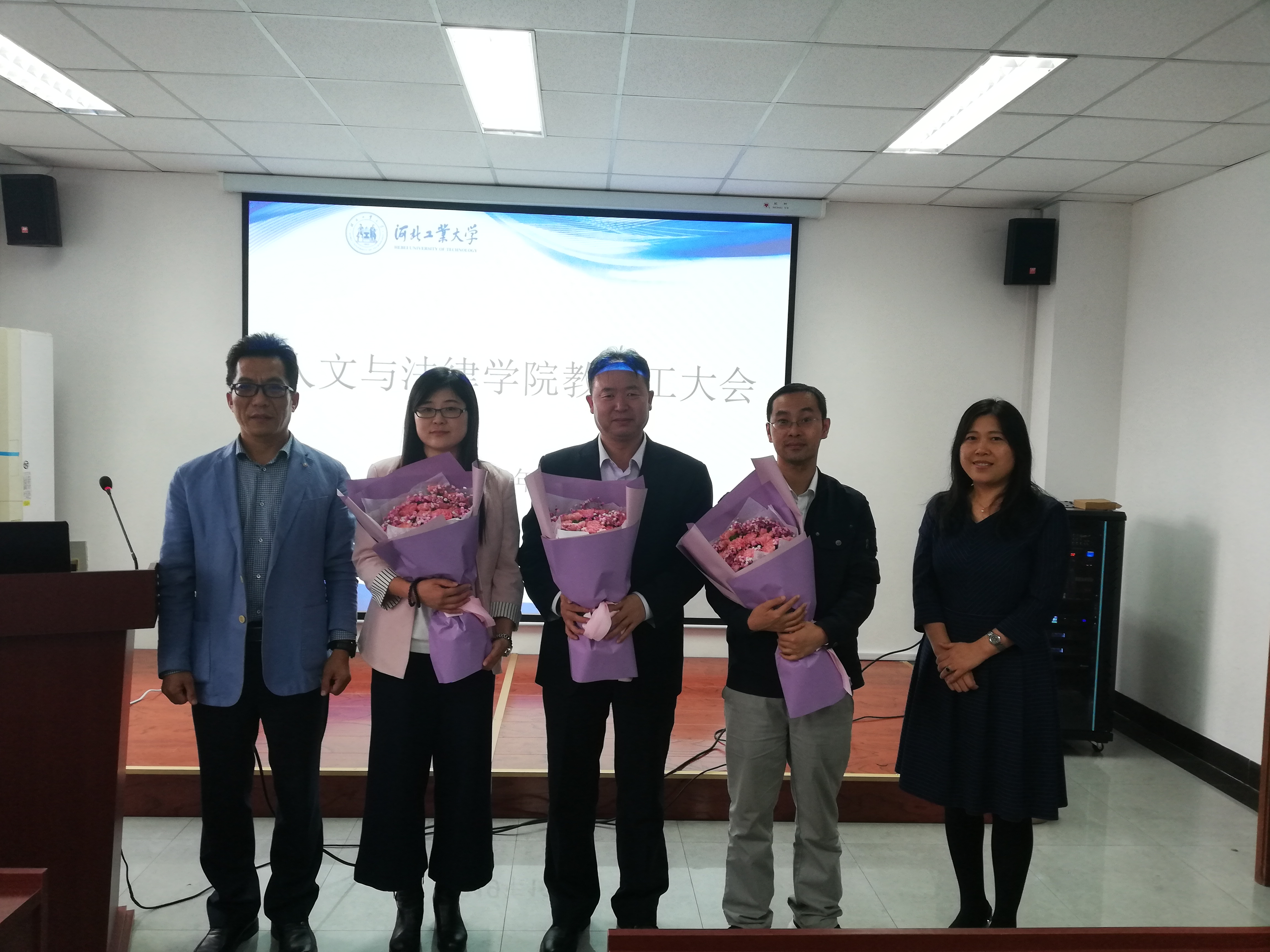 随后,白彦刚书记和李艳双院长向获得国家级项目的马立民、张金峰、李丽平三位教师赠送了鲜花。