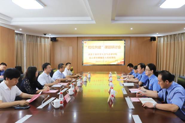 2019年7月15日,ag百家乐试玩 院长李子彪等一行六人到访江苏连云港市赣榆区人民检察院,就双方之间的检校合作进行深入交流,共同磋商,以期在人才培养、科学研究、社会服务等方面进一步做实、做精、做细。赣榆区检察院举行了热烈的欢迎仪式,党组书记、检察长刘波致欢迎辞,刘波检察长首先代表院党组和全体干警对我校各位领导、专家教授的到来表示热烈的欢迎,并对河工大的支持和理论指导表示衷心的感谢。刘波检察长指出,本次检校共建活动是对去年活动的进一步深化,对进一步增强检校共建共享、加深检校交流合作具有重要意义,他鼓励干警们珍惜机会、抓住机遇,借助专家的指导,提高自身法律与人文素养和理论研究层次。