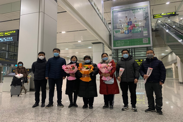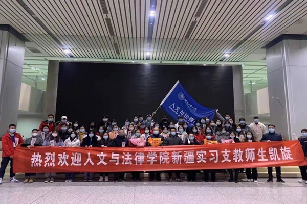 ag百家乐试玩51名援疆支教师生圆满完成为期三个月的援疆支教任务。师生们于12月30日晚从新疆和田地区于田县返津,校党委副书记贺立军及各职能部门领导、ag百家乐试玩 领导、辅导员等在天津滨海国际机场大厅迎接支教团凯旋。接机领导和老师们为凯旋支教团师生一一献花。