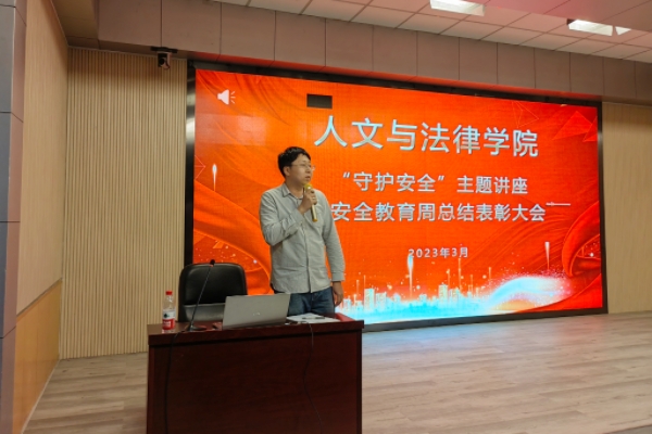 3月10日下午,ag百家乐试玩 在红桥校区东院开展“守护安全”主题讲座暨安全教育周总结表彰大会。出席本次活动的嘉宾有:公安红桥分局丁字沽派出所副所长杜牧、团支部书记边龙飞、宣传民警丁佳硕、红桥区见义勇为协会干事张鑫,河北工业大学安全工作处副处长田敬贤、ag百家乐试玩 党委副书记兼副院长李彦磊、安全工作处治安科科长陈安及ag百家乐试玩 全体辅导员。ag百家乐试玩 大一至大四全体班干部和宿舍长参加会议。