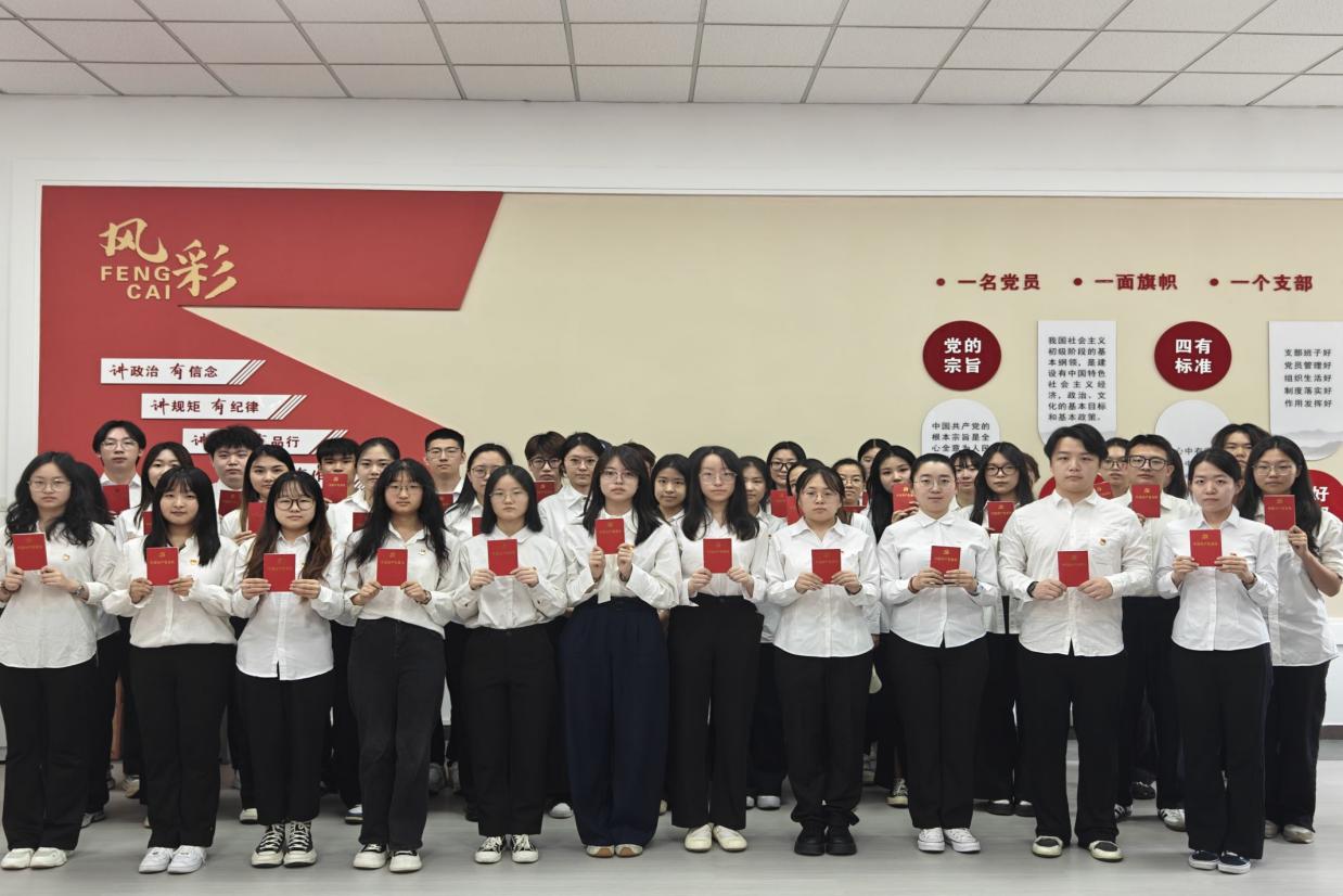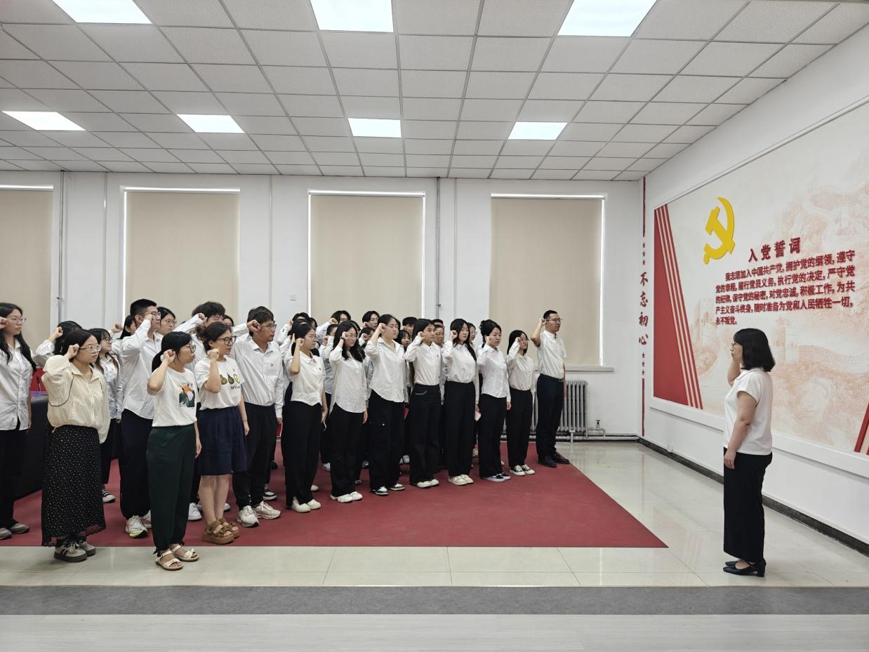 全体新发展党员和转正党员齐声跟诵入党誓词
