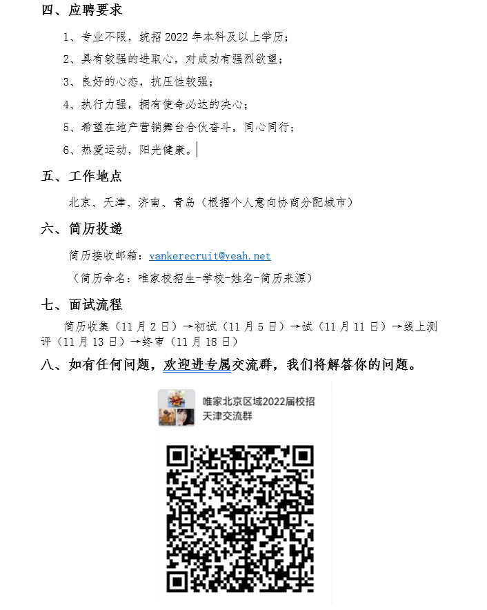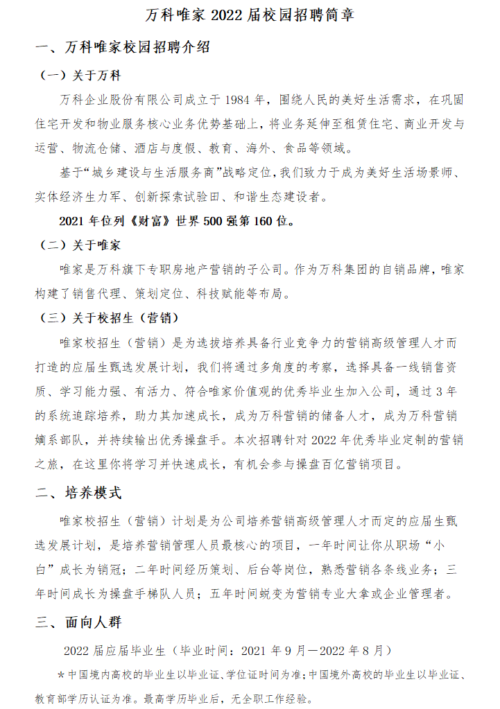 万科唯家2022届校园招聘简章
